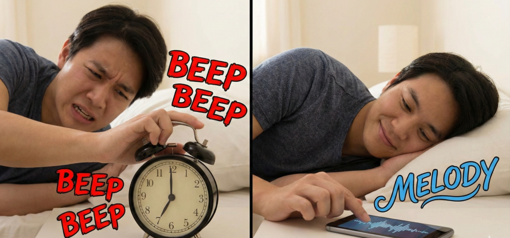 もしあなたがそんな悩みを抱えているなら、それはアラームの音選びに原因があるかもしれません。 多くの人が「絶対に寝坊しないために」と、ジリジリ鳴るベル音や、けたたましい電子音のアラームを設定していますが、実はその習慣が、あなたの朝のパフォーマンスを下げている可能性があるのです。
