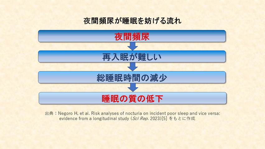 夜間頻尿は高齢者における睡眠障害の最も重要な要因の一つと報告されています[5]。