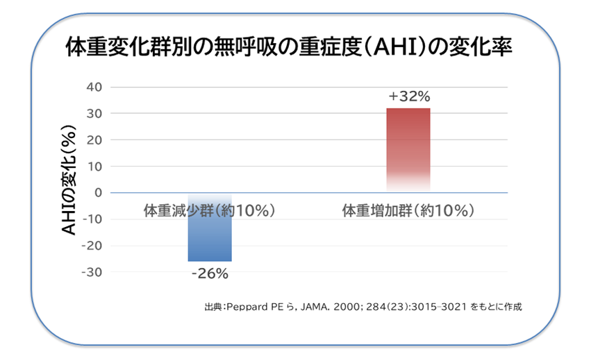 体重の増減は、睡眠中の無呼吸の程度に大きく関係します。