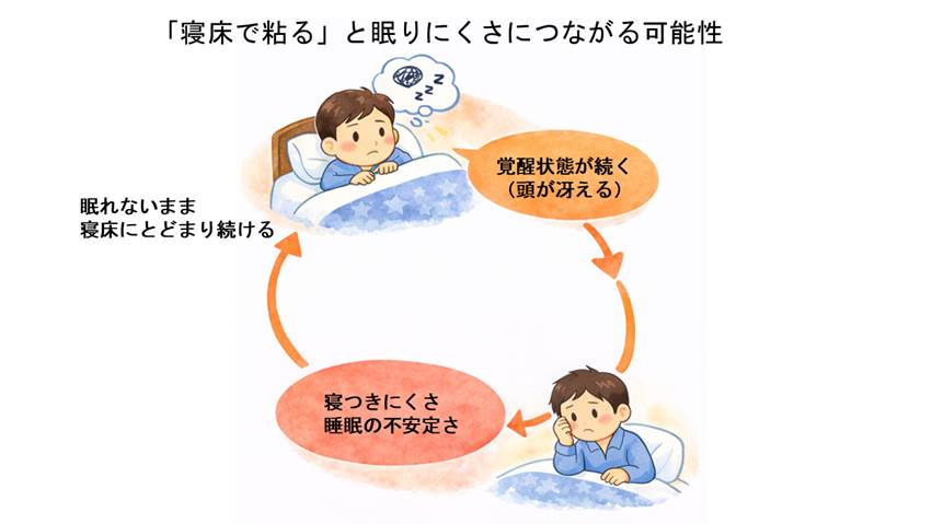 眠れない状態でも布団から出ずに横になり続ける行動は、一見すると自然な対処のように思えます。しかし、不眠に対する治療や研究の中では、このような行動が、かえって眠りにくさを長引かせる可能性があると考えられています。