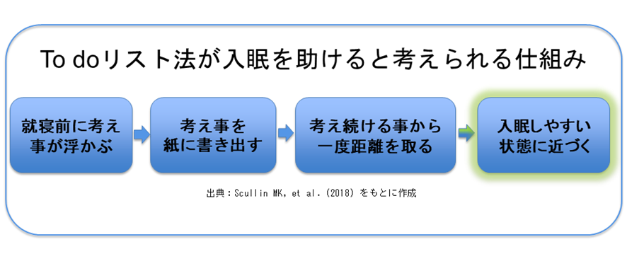 この結果から、就寝前に問題を解決することそのものよりも、考え続けてしまう状態から一度離れることが、入眠しやすくなることに関係している可能性があることがうかがえます[1]。